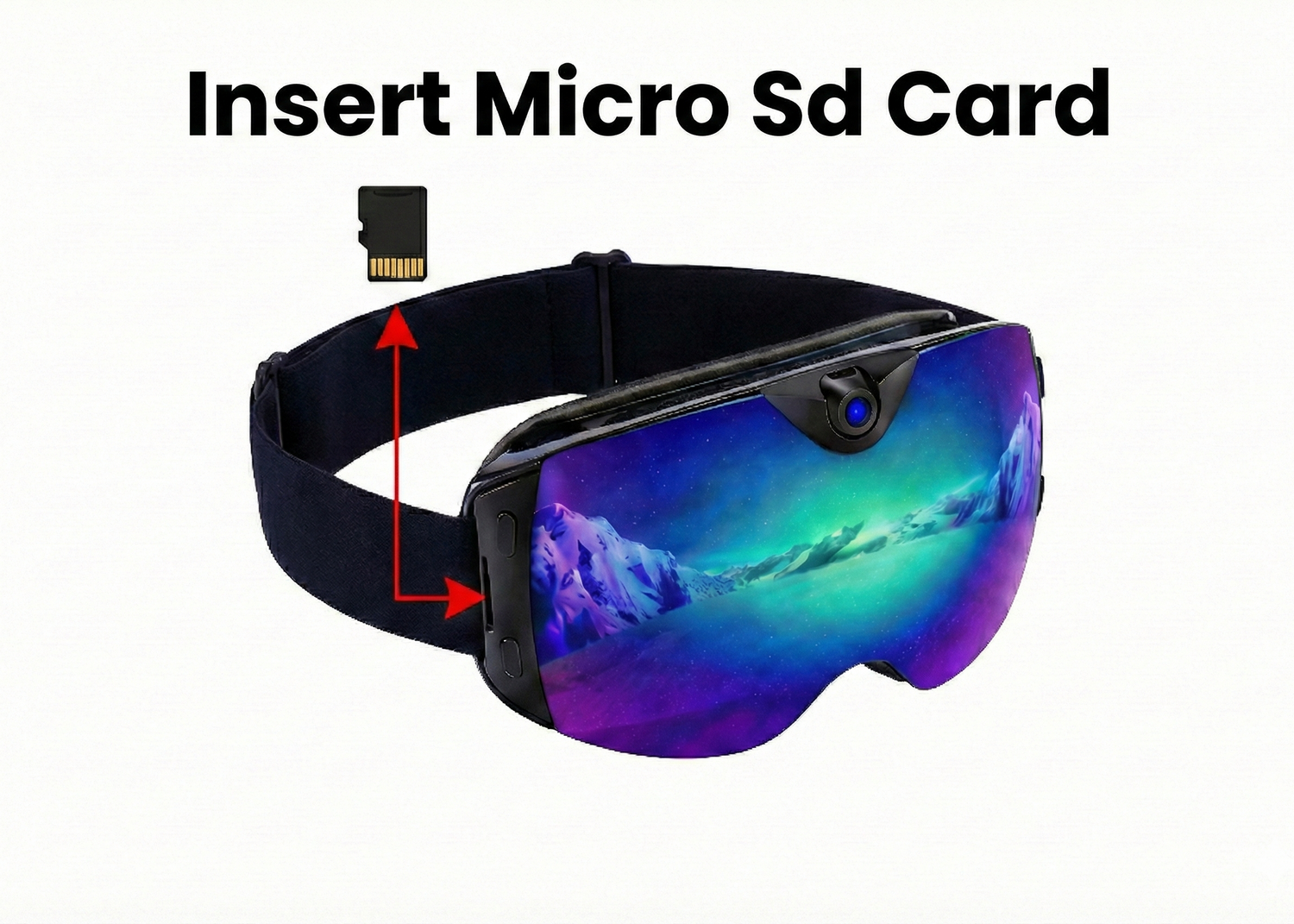 The goggles support MicroSD cards up to 512GB for extended video storage.